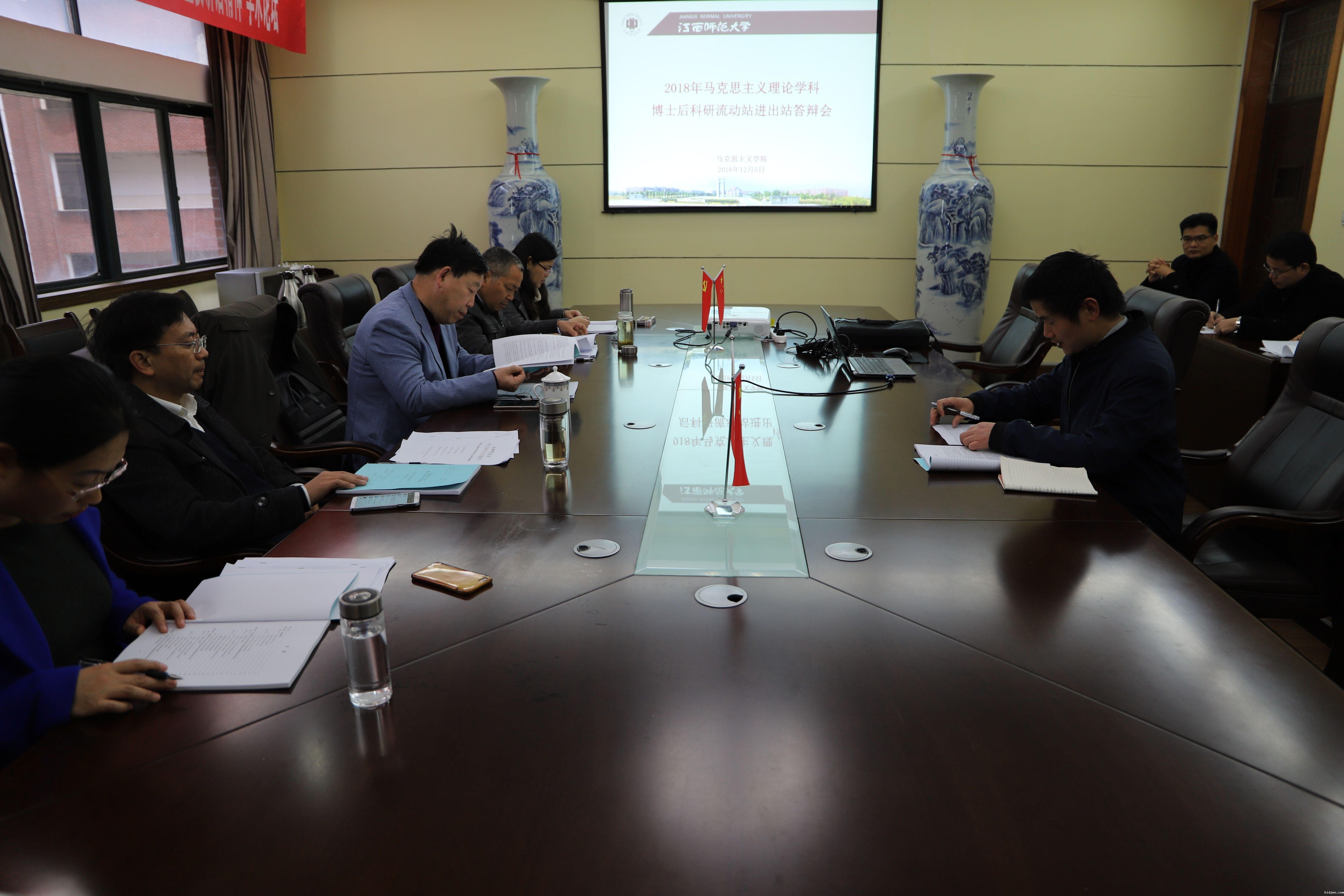 答辩工作共两场,钟俊博士后的出站报告题目是《马克思主义文本中的司法思想及其当代启示》,吴方浪博士后的进站报告题目是《唯物史观视域下的汉代丝路北道经济带丝绸贸易研究》;谭琪红博士后的进站报告题目是《习近平新时代中国特色社会主义思想高校传播研究——以江西本科院校为中心》;刘爱华博士后的进站报告题目是《唯物史观视域下中国春节习俗变革与重构研究》;刘为勇博士后的进站报告题目是《清末官制改革与国家治理结构转型研究》。答辩工作由张艳国教授主持,考核小组对五位博士后的研究工作给予了高度的评价,充分肯定了钟俊博士后在站期间的研究工作,同时也对四位博士后的进站报告提出了中肯的意见。